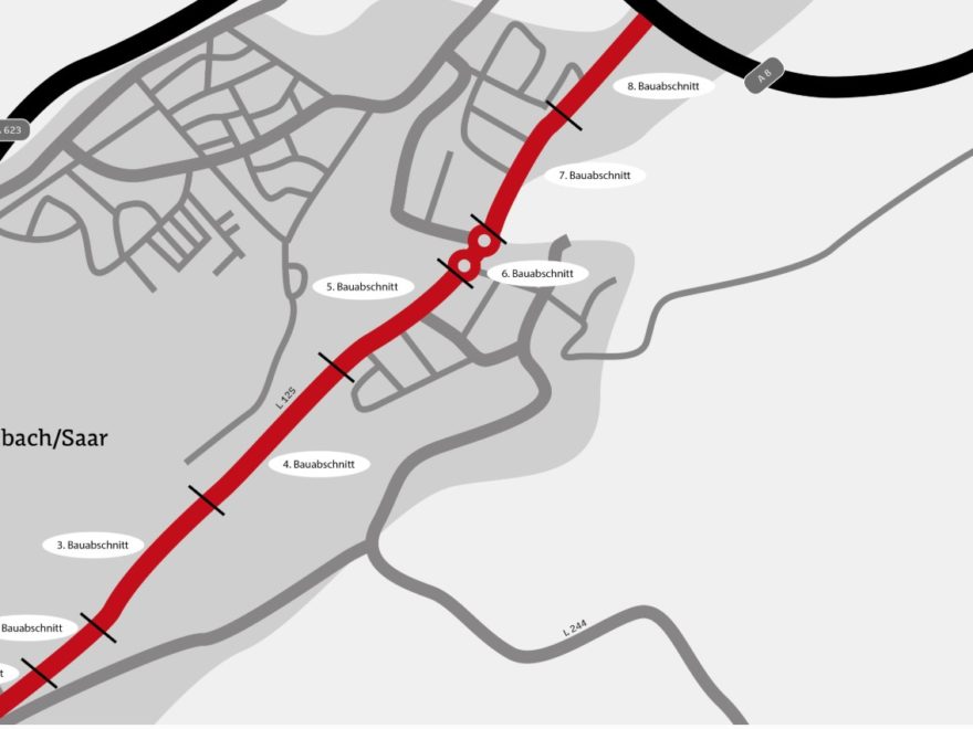 Am 23.02.26 beginnt der Landesbetrieb für Straßenbau (LfS) mit der Instandsetzung der L 125 zwischen Sulzbach und Friedrichsthal. Bis November